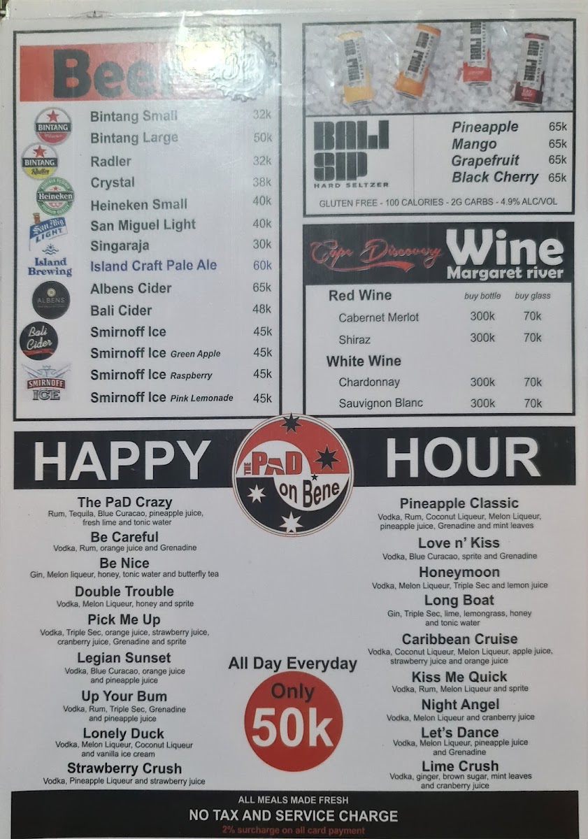 Welcome to The Pad On Bene, a culinary gem nestled in the heart of Legian, Bali. Known for its vibrant atmosphere and friendly service, this restaurant is a must-visit for both locals and travelers. Highlights of the menu include the refreshing Pad Thai, a fan favorite lauded for its exquisite flavor complemented by pickled vegetables. For those with dietary restrictions, gluten-free options such as sourdough bruschetta and Gado Gado are also available, ensuring an inclusive dining experience.